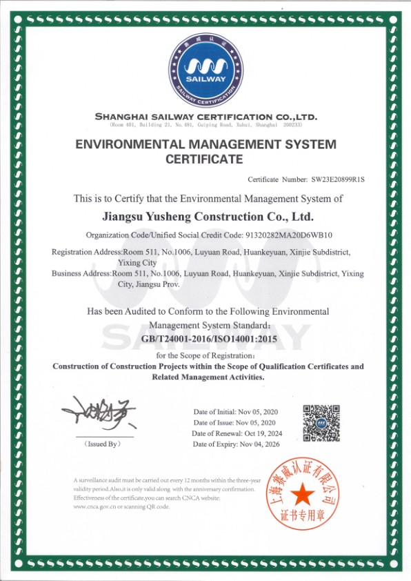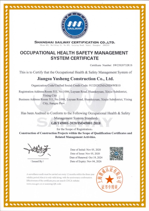 11月1-2日,上海赛威认证有限公司专家组对江苏宇盛建设有限公司的“质量、环境和职业健康安全”三标一体化管理体系认证进行了监督···
