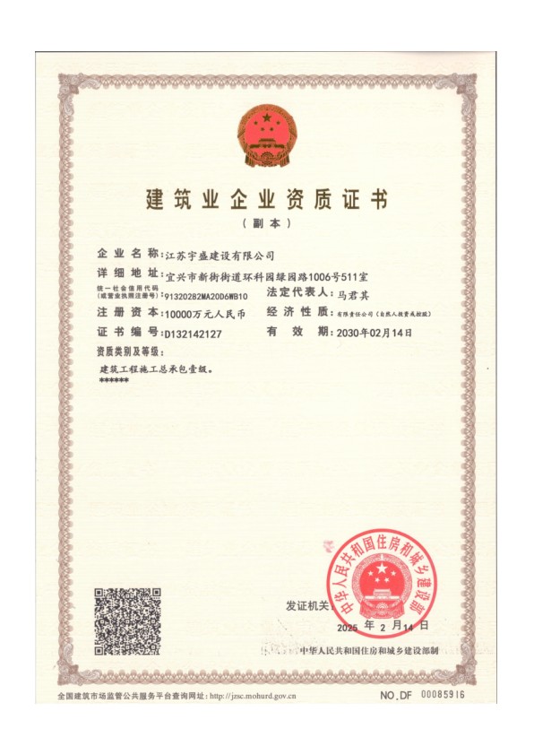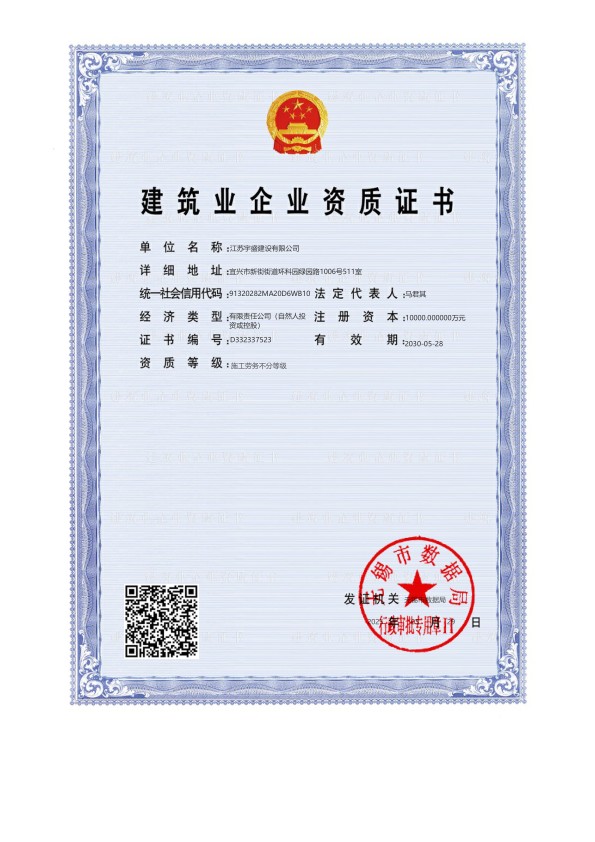 公司一个具有建筑工程施工总承包壹级资质的股份制企业。公司拥有资质:建筑工程施工总承包壹级;钢结构工程、消防设施工程专业承包贰级;机电安装、建筑装修装饰工程、地基基础、起重设备安装叁级、建筑劳务分包等。